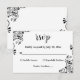 Elegante Schwarz-Weiß-Boho Verzierte Blumenhochzei RSVP Karte