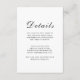 Elegantes Script Wedding Guest Details Card in Schwarz und Weiß. Entsprechende Einladungen für Hochzeiten finden Sie in dieser Sammlung.