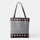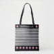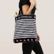 Elegante, schwarz-weiß gestreifte Tasche mit schönen rosa Blume und "Ökologisch Life" personalisierten Text. Lasst uns gute Vibes verbreiten!