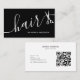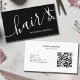 Elegante Schwarz Weiß Haar Script Schere QR Code Visitenkarte