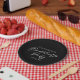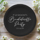 Dieser elegante schwarze Junggesellinnenabschied-Aufkleber enthält schicke weiße Typografie für eine moderne Braut, die mit ihren Brautjungfern ein hochklassiges Event feiert. Trendige personalisierte minimalistische Junggesellinnenabschied-Dekoration.