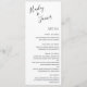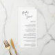 Einfaches Schwarzweiß-Hochzeitsmenü mit Ihren Namen in einem eleganten, handgeschriebenen Skript am oberen links und Ihren Menüoptionen in der rechten Ausrichtung unten rechts. Die schicke Handschrift fügt diesem minimalistischen Design eine romantische Touch hinzu.
