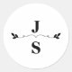 Elegante Schwarz-Weiß-Monogramm-Hochzeit Runder Aufkleber
