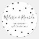 Einfache, elegante schwarz-weiße Polka-Punkte verstreut sich über Ihre personalisierten Hochzeitsdetails auf diesem schicken Hochzeitsaufkleber. Entwickelt von Thisisnotme©