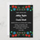 Diese elegante Blumen-Hochzeitseinladung eignet sich perfekt für eine moderne Blumenhochzeit im Sommer. Das romantische Design zeichnet sich durch blühende Blau und rote Rosen mit eleganter weißer Typografie auf fett schwarzem Hintergrund aus.