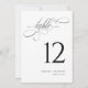 Elegante Schwarz-Weiß-Script-Hochzeiten-Tischnumme Einladung