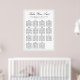 Mit unserem eleganten Black & White Script Seating Chart Poster führen Sie Ihre Gäste stilvoll zu ihren Plätzen. Dieses elegant gestaltete Poster besticht durch eine luxuriöse Schwarz-Weiß-Palette, die sich perfekt für jede formelle Hochzeitsreise eignet. Die raffinierte Schrift und das klassische Typografie-Design schaffen ein raffiniertes und charmantes Ambiente und machen es zu einer idealen Wahl für Ihre Hochzeitsdekoration. Die Einrichtung ist gut durchdacht und bietet Platz für bis zu 120 Gäste. Insgesamt stehen 15 Tische mit insgesamt 8 Tischen zur Verfügung. Jeder Tisch ist in einem leicht lesbaren, modernen Skript beschriftet, sodass die Gäste schnell und unkompliziert ihren Sitzplatz finden können. Die harmonische Farbpalette und die aufwändigen Details sorgen für ein einheitliches und glänzendes Aussehen und sorgen für ein elegantes Ambiente. Zeigen Sie dieses Sitzplakat am Eingang Ihres Empfangs, um Ihren Gästen ein nahtloses und stilvolles Erlebnis zu bieten. Dieses exquisite Sitzplakat sorgt für ein organisiertes und unvergessliches Fest. Kontaktieren Sie Designer für passende Produkte. Sammlung hier sehen: https://www.zazzle.com/collections/119635530295550134 Copyright Anastasia Surridge, alle Rechte vorbehalten.
