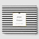 Elegante schwarz-weiße Streifen und ein in einen goldenen Rahmen gewickeltes Skript. Erleben Sie Ihren Hochzeitstag mit diesem zeitlosen Design nachhaltig. Der anmutige schwarze Bogen verleiht dem Ganzen eine raffinierte Touch, während die sorgfältig ausgewählte Typografie klassischen und modernen Stil verbindet. Dieses vielseitige Design koordiniert wunderbar über Ihre gesamte Hochzeitssuite, von rett-the-date, Einladungen, Dankeschön und Platzkarten. Für die Anpassung und Personalisierung von Designelementen wenden Sie sich bitte an remidevandesigns@gmail.com. RemideVan©