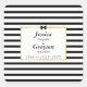 Elegante Schwarz-weiß Stripe-Goldrahmen-Hochzeit Quadratischer Aufkleber