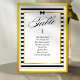 Elegante schwarz-weiße Streifen und ein in einen goldenen Rahmen gewickeltes Skript. Erleben Sie Ihren Hochzeitstag mit diesem zeitlosen Design nachhaltig. Der anmutige schwarze Bogen verleiht dem Ganzen eine raffinierte Touch, während die sorgfältig ausgewählte Typografie klassischen und modernen Stil verbindet. Dieses vielseitige Design koordiniert wunderbar über Ihre gesamte Hochzeitssuite, von rett-the-date, Einladungen, Dankeschön und Platzkarten. Für die Anpassung und Personalisierung von Designelementen wenden Sie sich bitte an remidevandesigns@gmail.com. RemideVan© Hinweis: Angehängtes Bild nur für Illustrationszwecke. Verkauf ohne Rahmen oder Standrahmen.