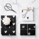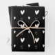 Elegante Schwarz & Weiß Weihnachtsherzen Schneeflo Geschenkpapier Set