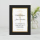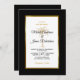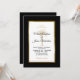 Mit dieser eleganten Einladung mit modernem Drehbuch, schwarzem und goldenem Text, inklusive einer künstlerischen Palme und metallischem Rahmen aus Gold, laden Sie Ihre Gäste ein, Ihren besonderen Tag zu feiern. Ein schwarzer Hintergrund ist vorne und hinten.