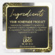 Elegante schwarz-weiße Inhaltsstoffe. BITTE BEACHTEN SIE: Keine metallische Folie oder Tinte und kein Glitzer wird zur Herstellung dieser Etiketten verwendet, sie werden nicht reflektierend oder glänzend sein.