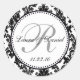 Elegante, Schwarz-weiße SilberDamassoße Runder Aufkleber