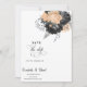 Elegante schwarze Blume auf weißem Hintergrund. Beautibel Save the Date, dass mit Ihrem Namen angepasst werden kann.Wählen Sie den "Anpassen"-Button, um den Schriftart Stil, Farbe und Größe zu ändern.