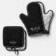 Elegante schwarze Erstehelichtspaare Ofenhandschuh & Topflappen-Set