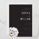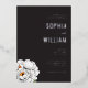 Diese elegante Hochzeitseinladung zeigt einen anspruchsvollen schwarzen Hintergrund mit knackigem weißen Text, wodurch ein auffallender Kontrast entsteht. Das Design enthält zarte Illustrationen von Pfingstrosen in der unteren linken Ecke, die dem Gesamterscheinungsbild einen Hauch von natürlicher Schönheit und Weichheit verleihen. Klassische Serifenschriftarten unterstreichen die formelle und verfeinerte Ästhetik, während ausreichend negativer Raum für Klarheit und Fokus auf die wesentlichen Details sorgt. Perfekt für Paare, die einen zeitlosen und minimalistischen Stil suchen, setzt diese Einladung den Ton für eine unvergessliche Feier.
