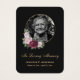 Schöne personalisierte Schwarz-, Bordeaux- und Goldgeflechtkarten/Begräbniskarten mit vergoldetem Foto mit bordeauxroten und rosa Blume auf dunklem Holzkohleuntergrund. Matching-Elemente verfügbar. Für individuelle Anfragen senden Sie uns bitte eine Nachricht via Zazzle Chat.