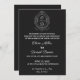 Diese Einladung zur Hochzeit zeichnet sich durch ein zartes, weißes Liniendesign auf schwarzem Hintergrund aus. Ein verzierter ovaler Rahmen ist mit aufwändigen Blumenmotiven, Bändern und Bögen geschmückt und schafft so einen eleganten und eleganten Look. Ideal für ein festes oder klassisches Hochzeitsthema.