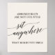 Dieses elegante, schwarze Kalligraphie-Creme-Zeichen "Sitz irgendwo" ist perfekt für eine einfache Hochzeit. Das neutrale Design besticht durch ein minimalistisches Poster, das mit romantischer und skurriler Typografie dekoriert ist. Auf dem Schild steht: "Sitzplatzreservierung ist nicht unser Stil, der Sie zum Lächeln bringt".