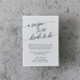 Diese elegante schwarze Kalligraphie-Rezeptkarte eignet sich perfekt für ein einfaches Brautparty. Das neutrale Design besticht durch eine minimalistische Karte, die mit romantischer und skurriler Typografie dekoriert ist. Bridal Dusche Einladungen und Rezept Karten werden separat verkauft.
