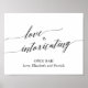Diese elegante schwarze Kalligrafie-Liebe ist ein berauschendes Zeichen für eine einfache Hochzeit. Das neutrale Design weist ein minimalistisches Schild auf, das mit romantischer und skurriler Typografie dekoriert ist. Personalisieren Sie dieses offene Bar mit den Namen der Braut und des Bräutigams.