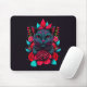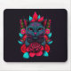 Elegante schwarze Katze umgeben von Rote Rosen | Mousepad