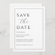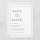 Set den Ton für Ihre Schwarze Krawatte Feier mit dieser eleganten Save the Date Karte. Dieses zeitlose Design mit klassischer Serif- und Skripttypografie auf einem sauberen, weißen Hintergrund eignet sich perfekt für formelle Hochzeiten. Egal ob Sie eine Ballsaal-Affäre oder ein gehobenes City-Event beherbergen, diese Karte verleiht Ihnen einen gepflegten und raffinierten ersten Eindruck. Einfach mit Ihren Namen und Hochzeitsdetails personalisieren.
