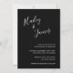 Moderne Hochzeitseinladung mit einem einfachen Design mit Ihren Namen in einer eleganten, handgeschriebenen Schrift am oberen links und Ihren Veranstaltungsdetails in der rechten Ausrichtung unten rechts. Alle Designelemente sind auf schwarzem Hintergrund weiß und können im Designbearbeitungstool geändert werden. Die schicke Handschrift fügt diesem minimalistischen Design eine romantische Touch hinzu.