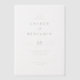 Diese elegante Hochzeitseinladung verfügt über ein minimalistisches Design mit einem sauberen weißen Hintergrund, das Einfachheit und Eleganz betont. Das Layout ist strukturiert mit zentriertem Text in einer hierarchischen Anordnung, wobei fette Serifenschriften für die Namen und das Datum verwendet werden, während eine kursiv geschriebene Schrift dem Wort "und" einen Hauch von Eleganz verleiht. Der schwarze Text auf einer weißen Palette schafft einen klassischen Look, der perfekt geeignet ist, um Förmlichkeit und Raffinesse zu vermitteln. Ideal für Paare, die eine dezentrale, aber dennoch elegante Ästhetik suchen, gibt diese Einladung den Ton für eine unvergessliche Feier an.