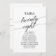 Diese eleganten, schwarzen Tischnummern mit 28 Sitzplätzen sind perfekt für eine Hochzeit. Das neutrale Design besticht durch eine minimalistische Karte, die mit romantischer und skurriler Typografie dekoriert ist. Die Karte druckt auf der Vorder- und Rückseite (beidseitig).