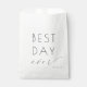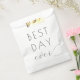 Diese elegante Tüte für Hochzeitsgeschenke zeichnet sich durch ein minimalistisches Design mit dem Satz "BEST DAY ever" aus, der prominent in einer Mischung aus fetter serifenloser und fließender Schreibschrifttypografie dargestellt wird, wodurch ein Gleichgewicht zwischen Stärke und Anmut entsteht. Der schwarze Text auf weißem Hintergrund unterstreicht Klarheit und Zeitlosigkeit und macht ihn perfekt für die Erinnerung an besondere Momente. Das Layout ist einfach, aber dennoch elegant und nutzt ausreichend Leerraum, um die zentrale Botschaft hervorzuheben, ideal für die Feier von Hochzeiten oder bedeutenden Ereignissen im Leben.