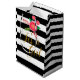 Elegante Schwarzweiss-Streifen mit rosa Blumen Mittlere Geschenktüte