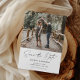Mit unserer eleganten Save the Date-Karte verkünden Sie Ihren besonderen Tag. Dieses Design verfügt über moderne Kalligraphieskripte und einen Platzhalter für Ihr spezielles Foto. Hinter dem Hotel befindet sich eine einzigartige Scheunentalusie, die sich perfekt für Paare mit einer Stallehhochzeit eignet. Ihre Hochzeitswebsite wird auch angezeigt, damit die Gäste alle Details Ihres großen Tages abrufen können. Dieses minimalistische, aber personalisierte Design ist eine stilvolle Möglichkeit, Ihre spannenden Neuigkeiten mit Lieben zu teilen.