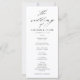 Ein schlichtes und elegantes Hochzeitsprogramm mit eleganten Schriftzeichendetails und klassischem Foto. Die Rückseite hat weitere Details. Klicken Sie auf die Schaltfläche Bearbeiten, um dieses Design anzupassen.