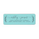 Das schicke, moderne und schlichte Hochzeitsadressen-Label mit Ihren Namen in schwarz-eleganter Schrift-Kalligrafie mit einer stilvollen Touch rustikalen Blattwerks auf türkisblauem Hintergrund. Fügen Sie einfach Ihren Namen und Ihre Adresse hinzu. Exklusiv für Sie entworfen von Happy Dolphin Studio. Wenn Sie Hilfe oder passende Produkte benötigen, kontaktieren Sie uns bitte unter happydolphinstudio@outlook.com. Wir helfen Ihnen gerne, Ihre Hochzeit zum schönsten Tag zu machen!