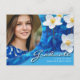 Elegante Script-Blume Blau | Modernes Foto Grad Postkarte