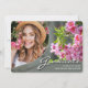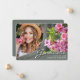 Eine einzigartige, individuell gestaltete Foto Abschluss-Anzeigenkarte mit Designelementen aus elegantem handgeschriebenem Stil mit modernem Text. Das Foto der Absolventen wird durch die schöne rosa Blume mit einem schluckgrünen Hintergrund verstärkt. Auf der Kartenrückseite finden Sie personalisierte Textstellen für Informationen über den Abschluss und die weitere Reise. Sie können die Primär- und Textfarben auf der Kartenrückseite leicht an Ihre Bedürfnisse anpassen. Um mehr zu sehen, besuchen Sie meinen Shop hier unter "www.Zazzle.com/LakeViewCardCo". Danke