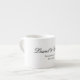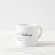 Elegantes Skript und Blocktext Braut und Bräutigam mit Hochzeitsort und Datums-Expresso-Tasse.