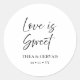 Mit unseren modernen und stilvollen "Liebe ist Sweet" Rundaufklebern. Diese eleganten Aufkleber sind mit schwarzen handgeschriebenen Schriftzeichen und klassischen Schriften auf weißem Hintergrund ausgestattet und eignen sich somit hervorragend für feierliche Hochzeiten. Sie können die Farben des Texts und des Hintergrunds ganz einfach an Ihr Thema anpassen. Fügen Sie Ihren Gastgeschenke Hochzeiten oder Party-Dekorationen mit diesen stilvollen Rundaufklebern eine Touch der Eleganz hinzu. Egal ob Sie elegante Einladungen kreieren oder Geschenktüten individualisieren, diese Aufkleber werden Ihre Gäste sicher beeindrucken. Holen Sie sich noch heute Ihre Touch und fügen Sie Ihren besonderen Tag mit einer personalisierten hinzu!