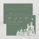 Elegante Script Castle Sage Green Wedding RSVP Karte