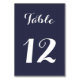 Erstellen Sie Ihre eigene, personalisierte, elegante, stilvolle, schöne weiße Typografie-Skript, moderne chic dunkelblau und weiß, hochwertige Tischnummer-Karte. Ideal für Hochzeiten, Brautparty, Abendessen, Party oder anderen besondere Anlass. Geben Sie einfach die Tischnummer ein, um sie anzupassen.