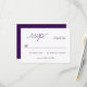 Diese RSVP-Karte für Hochzeiten bietet elegantes Drehbuch auf schicken lila Hintergrund mit modernem minimalistischem Ansatz. Sie können das Design-Tool verwenden, um den Stil und die Größe des Schriftartes zu ändern. Sehen Sie sich andere Produkte aus dieser Sammlung an.