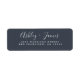 Das elegante, moderne und einfache Hochzeitsadressen-Label mit Ihren Namen in weißer, eleganter, handgeschriebener Schrift-Kalligraphie auf einem dunkelblauen Holzkohle-Hintergrund. Fügen Sie einfach Ihren Namen und Ihre Adresse hinzu. Exklusiv für Sie entworfen von Happy Dolphin Studio. Wenn Sie Hilfe oder passende Produkte benötigen, kontaktieren Sie uns bitte unter happydolphinstudio@outlook.com. Wir helfen Ihnen gerne, Ihre Hochzeit zum schönsten Tag zu machen!