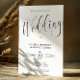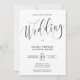 Das Design bietet Skript-Schriftart, das für das Wort 'Hochzeit' verwendet wird, und Standard-Schriftart für alle anderen Texte; alles auf weißem Hintergrund.