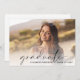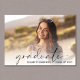 Elegante Abschlussfeier Einladung flache Karte mit dem Foto des Absolventen überlagert mit "graduate" in einem dünnen modernen Drehbuch und ihren Namen und Klasse Jahr in einfachen Typografie. Auf der Rückseite fügen Sie die Details der Graduierungsparty hinzu.