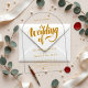 Diese elegante Einladung in Weiß und Gold ist ideal für eine moderne Hochzeit. Das einfache Design zeichnet sich durch elegante Goldkalligraphie auf einem klaren Acrylboden aus.