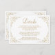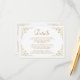 Diese elegante, Vintag inspirierte, formelle Kapselkarte für Hochzeitsdetails enthält den Text in goldfarbenem Drehbuch und Serif-Schriftart, gerahmt durch ein zartes Vintages Goldmotiv. Der Rahmen wird auf der Rückseite wiederholt.
