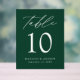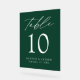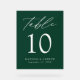 Trendy, minimalistische Hochzeitskarten mit "Tisch" in einem weißen Kalligrafieschrift mit dunkelgrünem Acrylhintergrund. Zum Bestellen des Plastikkartenzeichens: Name, Hochzeitstermin und Tischnummer hinzufügen. Fügen Sie jede Nummer einzeln in Ihren Warenkorb und Karo, wenn Sie fertig sind.