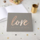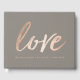 Dieses elegante und schlichte Gästebuch verfügt über einen Schriftart mit Imitat-Folienskripten in einer hübschen Farbpalette aus Grau und Rose. Personalisieren Sie mit Namen, Hochzeitsdatum und einem Foto auf der Rückseite.